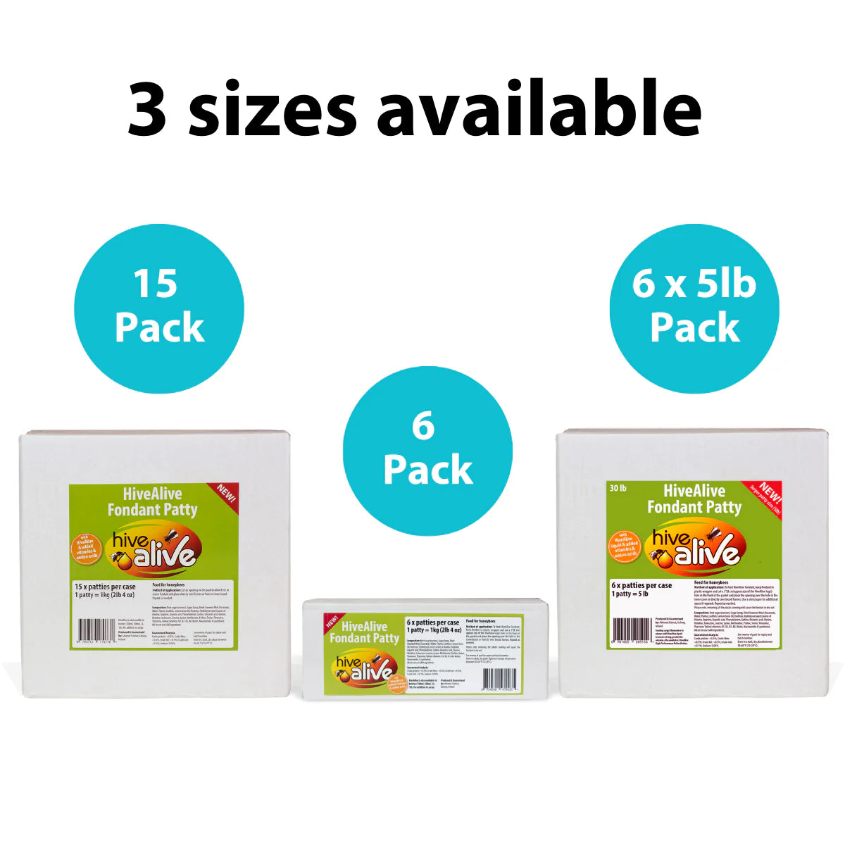 The HiveAlive Fondant Patty is a premium product sold in 1kg/2.2lbs pouches with the correct dosage of HiveAlive liquid added as well as an optimized blend of vitamins & amino acids chosen for bee health. It is available in sealed 1kg/2.2lbs pouches. Long shelf life, 2 years from date of manufacture.